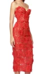Elegant Strapless Embroidery Flower Lace Midi Red Bodycon Dress: A Show-Stopping Look
